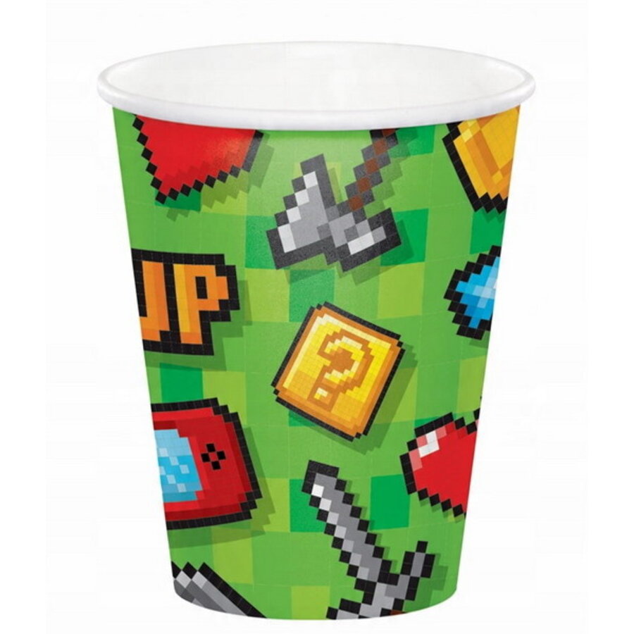 Acht bekertjes bedrukt met game figuren. Perfect voor game kinderfeestjes. Inhoud: 266ml.