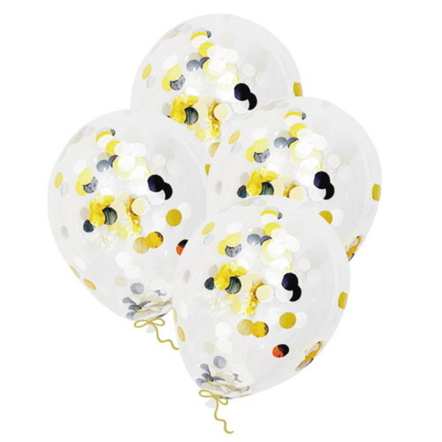 Confetti ballonnen met goud zwarte confetti 4 stuks