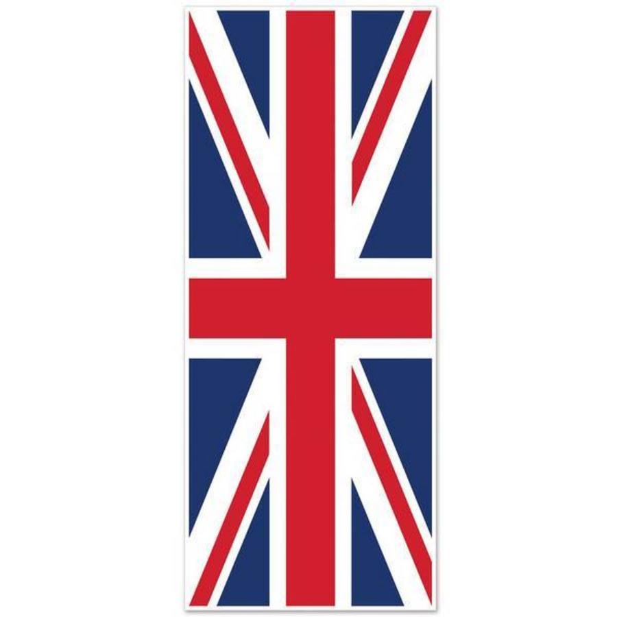 Een grote deurposter bedrukt met de Engelse vlag. Perfect voor themafeesten en Engelse stijl. Afmeting: 76 x 152cm.