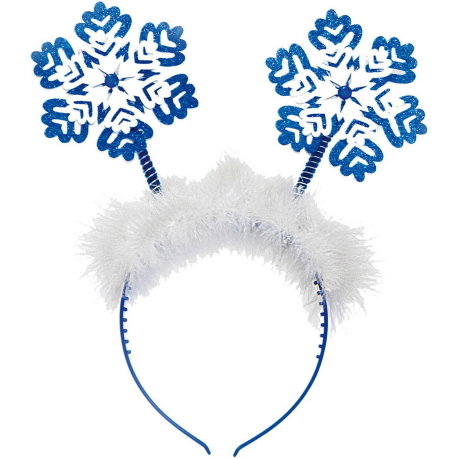 Een diadeem met 2 sneeuwvlokken. Leuk om te dragen tijdens een winterfeest. One size, fits all.