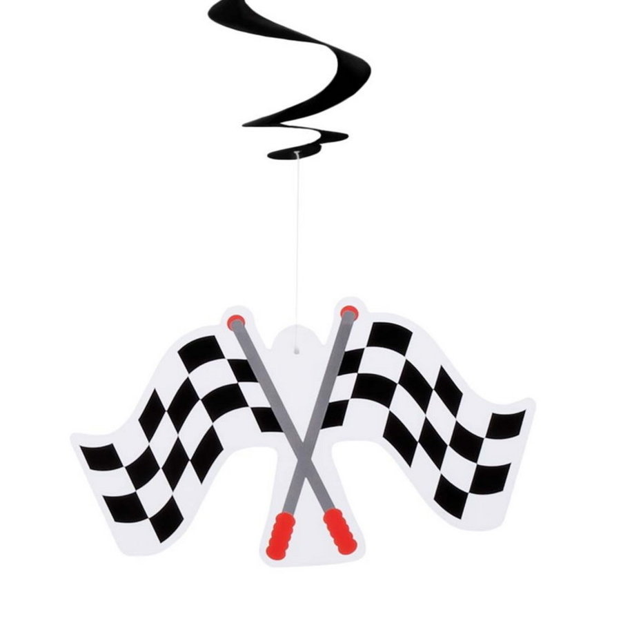 Een pakje met 3 hangdecoraties met Formule 1 figuren. Cool voor een kinderverjaardag in het thema Autorace/Formule 1. Lengte: 85cm.
