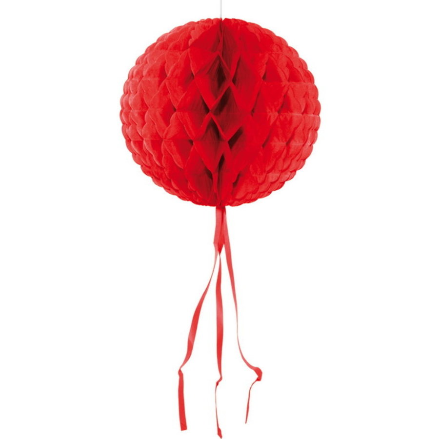 Een prachtige rode honeycomb decoratie met een doorsnede van 30cm.