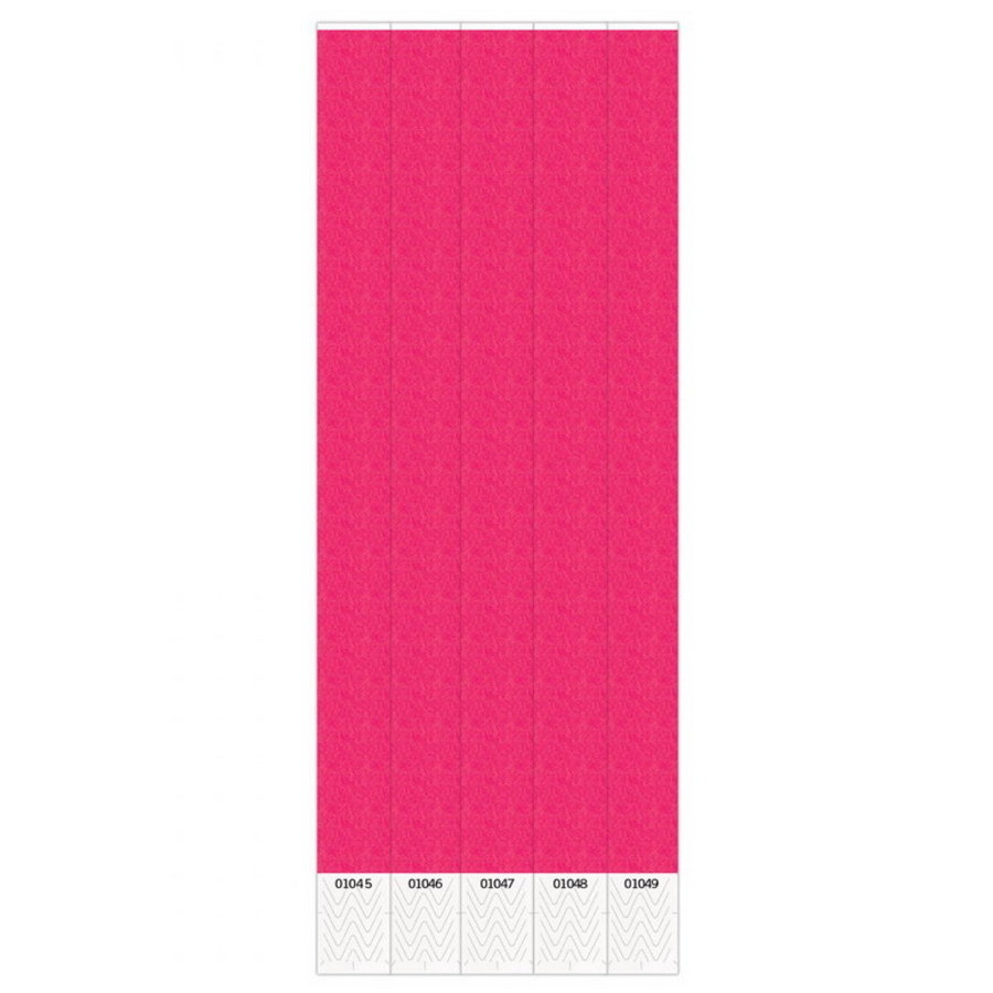 Een pakje met 5 polsbandjes in de kleur fluor roze. Superleuk detail om iedereen een polsbandje te geven voor een themafeest. Ze zijn verschillende genummerd, dus je zou er ook een prijs aan kunnen verbinden door alle nummers op een papiertje te schrijven, in een bakje te doen en aan het eind van de avond één nummer eruit te halen. And the winner is...! Tadaa!