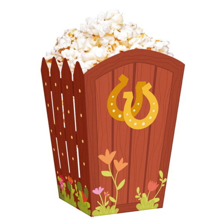 Een pakje met 6 prachtige popcorn bakjes in het thema paarden. Afmeting: 8.5cm x 13.5cm. Super leuk om te gebruiken tijdens een kinderverjaardag in het thema paarden of boerderij.