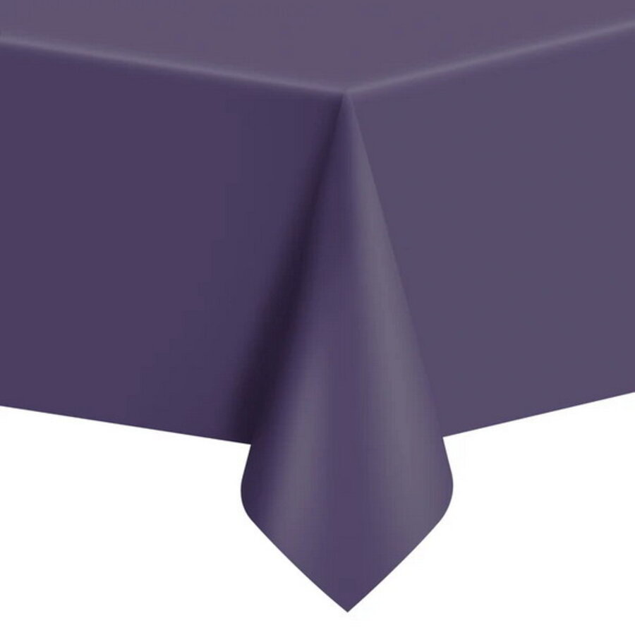 Een plastic tafelkleed met een afmeting van 137 x 274cm. Kleur: donkerpaars. Perfect voor themafeesten op kleur!