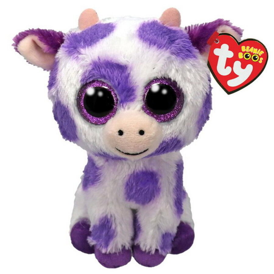 Ty Plucheknuffel Ethel de Koe. Lengte: 15cm. Originele Ty Beanie plucheknuffel met glitterogen. Naam: Ethel. Jarig: 10 oktober.