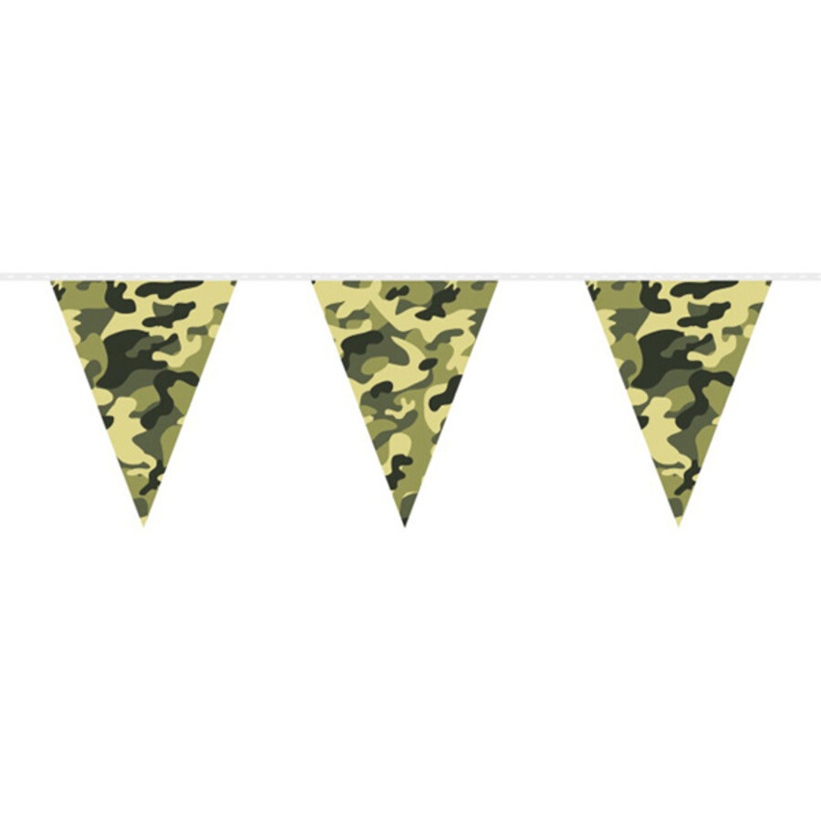 Een vlaggenlijn in camouflage kleuren. Lengte: 10 meter. Let op! De kleuren zijn in werkelijkheid wat lichter dan op de foto.